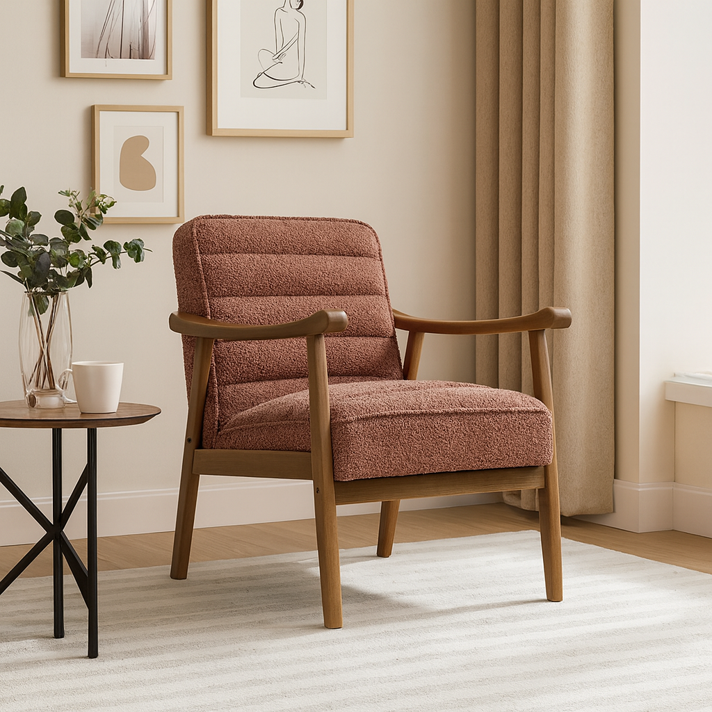 A timeless armchair designed to bring comfort and elegance to your interiors. Upholstered in soft cotton fabric, it offers a cozy seating experience with supportive cushioning. The sleek yet inviting design makes it a versatile piece that complements living rooms, bedrooms, lounges, or office spaces.