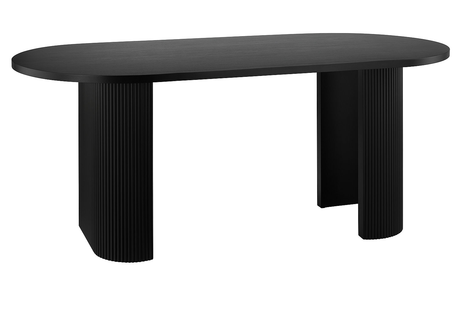 Modern Black Oval Dining Table with Fluted Base