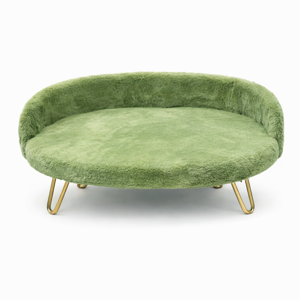 Luxe Plush Pet Bed with Gold Legs – Green (Sofa-Style)